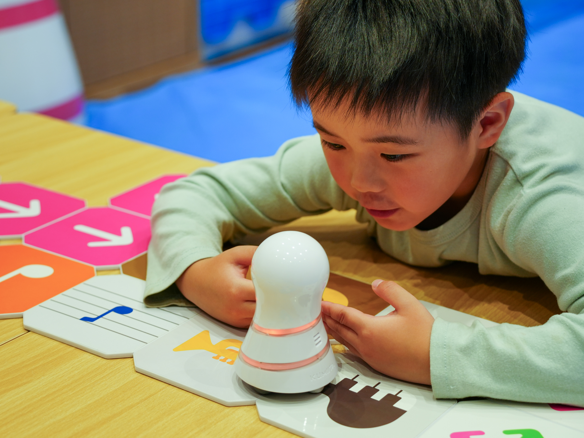 クミータ(本体)が矢印の方向に進みます。連れて行きたい方に進めるようパネルを置いて、